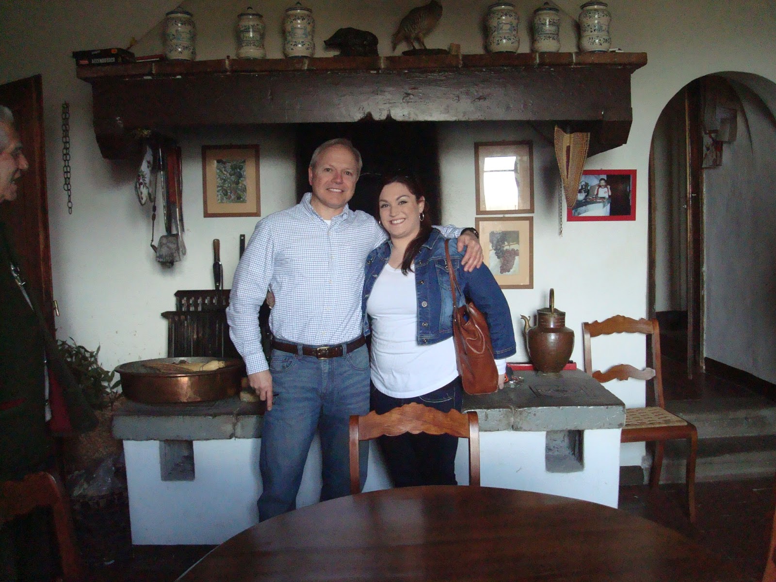Our first adventure for the five of us was a tour of the Savignola winery. Angie had arranged the tour through our wonderful “insegnante” (Italian teacher) Moira, who also happens to run wine tours, customized to suit your taste. Moira began the day’s journey with a brief stop at the bustling market in the central piazza of the town Greve, taking a moment to pose with one of the locals.